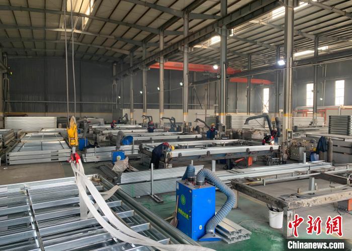 图为河北佳强节能科技有限公司生产车间全负荷运转为武汉火神山医院生产箱式房。 宋敏涛 摄