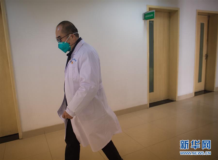 1月29日,武汉金银潭医院院长张定宇回到医院后马上换装投入工作。新华社记者 肖艺九 摄