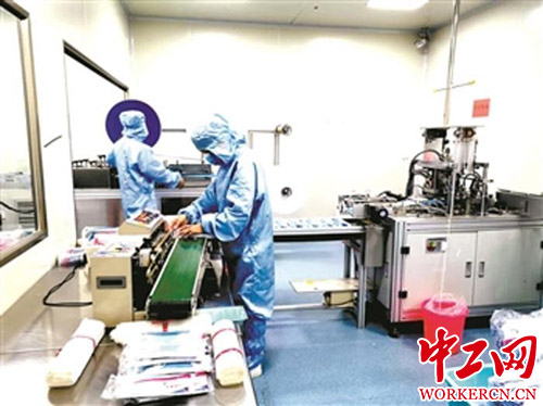 在重庆宏冠公司生产车间里,“全副武装”的操作工正在流水线上忙碌。工人日报—中工网记者 黄仕强 摄