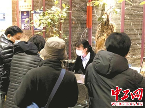昆明市云水星际大酒店前台服务员正在为湖北籍滞留游客办理入住手续。工人日报—中工网记者 黄榆 摄