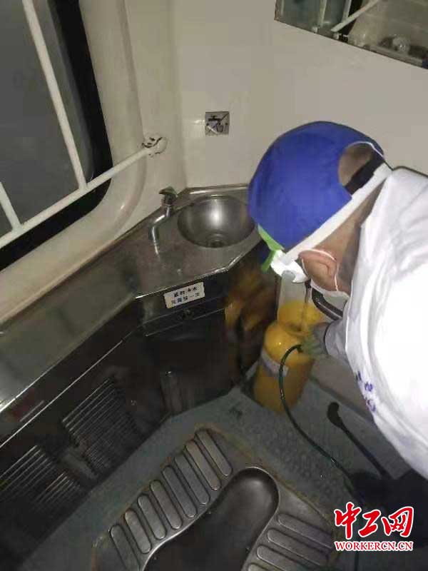 2020年1月30日消杀人员正在对2635次列车进行终末消毒拍摄人:武子明