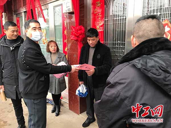 1月25日大年初一,江永兵着戴口罩挨家挨户向村民发送《致全市人民的一封信》、《冬春季节谨防流感来袭》等宣传资料。