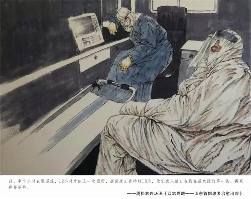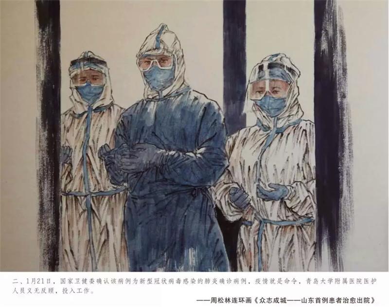 眼下新型冠状病毒感染的肺炎疫情防控进入关键期,一线医护人员的奋战精神感染了很多人。尤其山东首例患者治愈出院,更是鼓舞人心。受此感召,青岛大学周松林副教授,近日用两天一夜的时间,不休息不间断的创作了连环画《众志成城——山东首例患者治愈出院》,记录下山东抗击疫情中的这一重要事件。