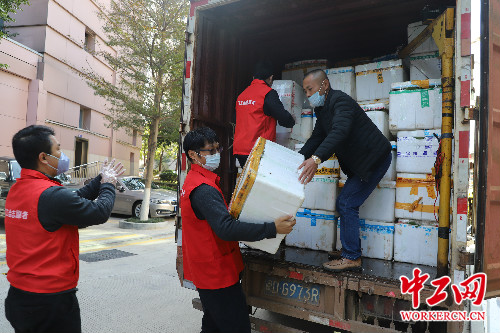 下午3点50分,杨铭新又把52箱蔬菜送到了厦门大学附属第一医院,厦门市全媒体中心党员突击队和医院食堂员工一同搬运蔬菜,这批蔬菜除了在食堂供应7000多名医护人员的伙食,还有部分将送给抗疫一线职工及其家属。