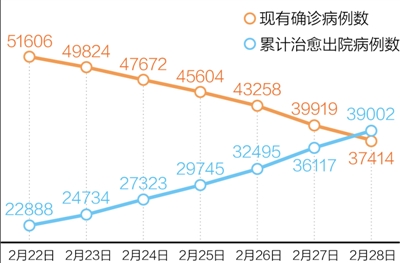 人民日报北京2月29日电 (记者邱超奕)截至2月28日24时,31个省区市和新疆生产建设兵团现有确诊病例37414例,其中重症病例7664例;累计治愈出院病例39002例;累计死亡病例2835例;累计报告确诊病例79251例;现有疑似病例1418例。2月28日,湖北省以外省份共新增确诊病例4例,湖北省除武汉外其他地市新增确诊病例3例。全国累计治愈病例数与累计死亡病例数的比值进一步扩大到13.8∶1,治愈率持续上升。29日,国务院联防联控机制召开新闻发布会,介绍新冠肺炎治疗与患者康复情况。