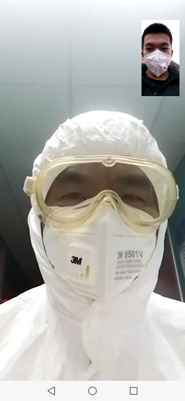 王朝洁和战“疫”一线的父亲视频通话