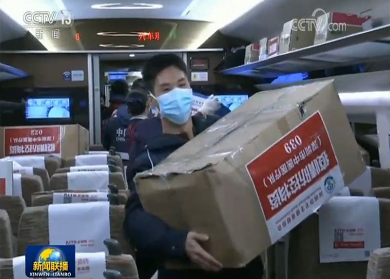 这趟高铁是正月初一以来突击队转运的第211次,他们必须在停靠的7分钟时间内,把300件医疗物资安全卸下车厢。