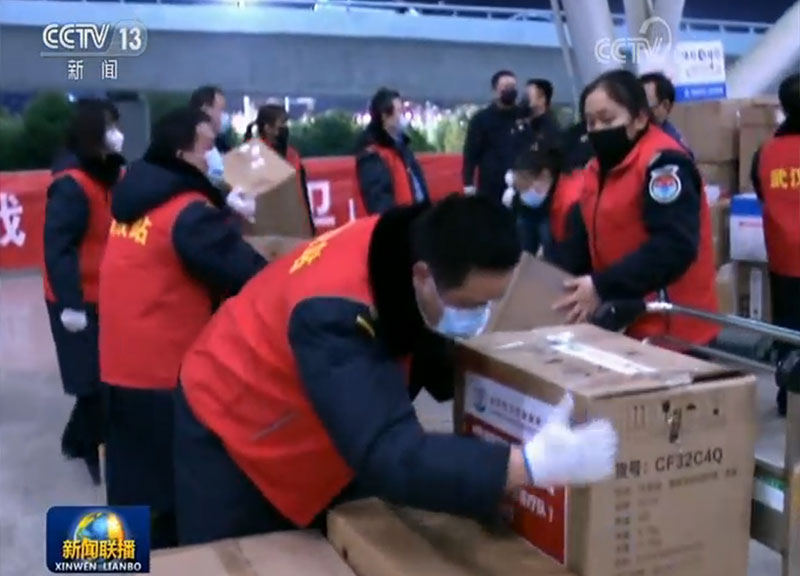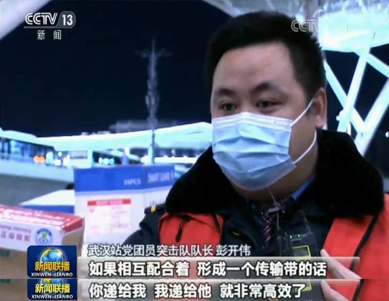 在武汉火车站党团员突击队队员们的努力下,近两万件医疗物资全部在第一时间安全转运。