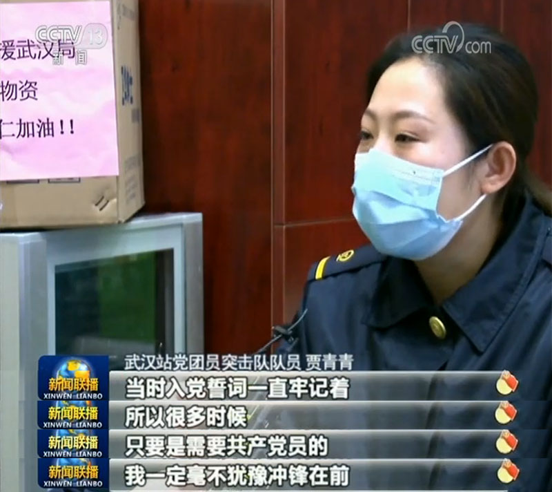 武汉火车站33名突击队员,已经20多天没回家。作为值班站长,贾青青每天需要厘清运输疫情防控物资和医务人员的高铁列车到站计划,掌握车次、数量、车厢,协助调整列车停靠站台股道。一件50多斤重的医疗器械,贾青青搬起来就走。她说只因为她是一名中国共产党党员,入党誓词一直在她的血液中流动。