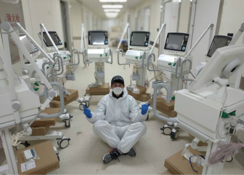 现在,软件、细节这些交给工程师,柜子、底座和组装我都能完成。我和雷师傅一起除了安装呼吸机,也安装治疗新冠肺炎的神器ECMO和紫光杀菌机器人,就是紫外线灯照杀菌的机器人。我们是黄金搭档!有一次,在泰康同济医院,一个通宵,我们就安装了十五台呼吸机。