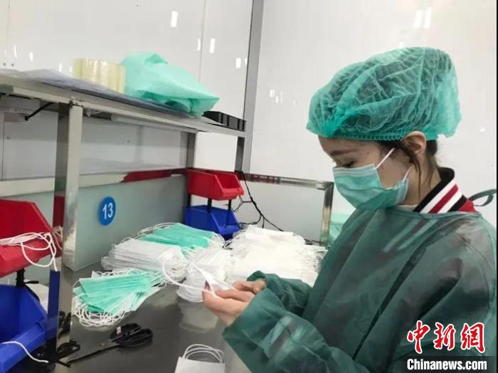上海宝山志愿者在消毒机生产线上。上海团市委、上海青年志愿者协会供图