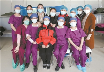 武汉雷神山医院医学检验科部分成员合影(3月4日摄)。