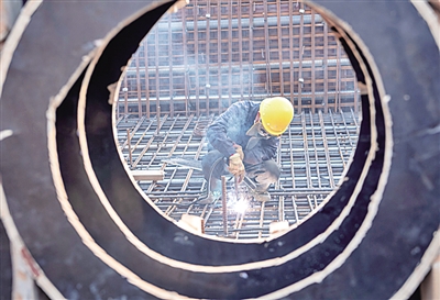 3月6日,工人在位于山西省晋中市榆次区的太焦高铁晋中特大桥项目施工现场作业。新华社记者 杨晨光摄