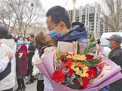 3月19日,郗汇聪和队友一起返回青海了。看到街道上群众自发地赶来迎接,热烈鼓掌和竖起大拇指,喊着“欢迎英雄回家”,郗汇聪的眼睛湿润了。他也看到了他日思夜想的妻子王静如。