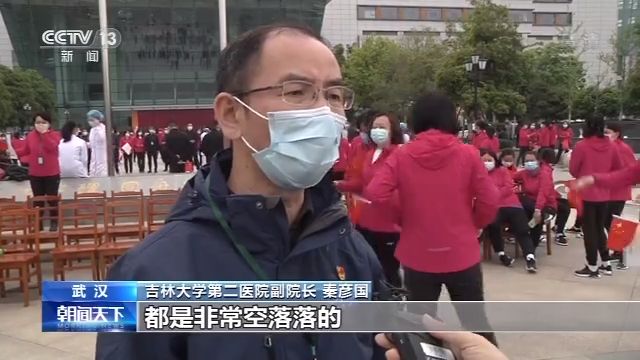 吉林大学第二医院副院长 秦彦国:我努力想记下你们每个人的名字,可惜我依然没有办法记全,希望你们再回来。如果你们来了,请给我们来一个电话,我们一定要请你们尝尝武汉的美食,喝武汉的排骨藕汤,谢谢你们,医者仁心,大爱无疆。