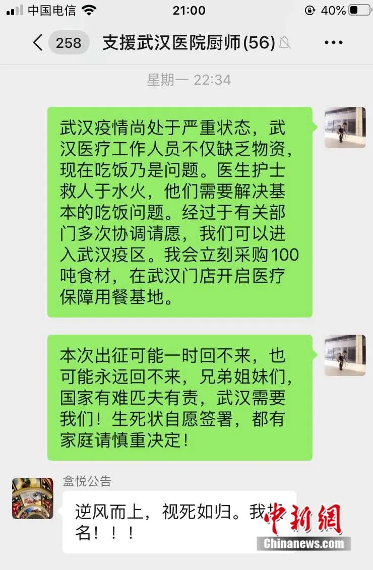 然而消息发出去没多久,疫情来袭。医护人员高强度工作,常常吃不上一口热饭,这让刘仙的心紧揪着。1月30日,她在朋友圈发出“赌命支援武汉,紧急求援”的消息,并在群内征集志愿者,赶赴武汉为医护人员做饭。