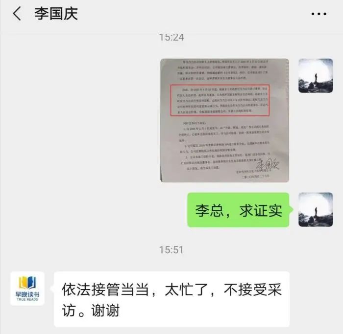 李国庆微信回应记者询问。