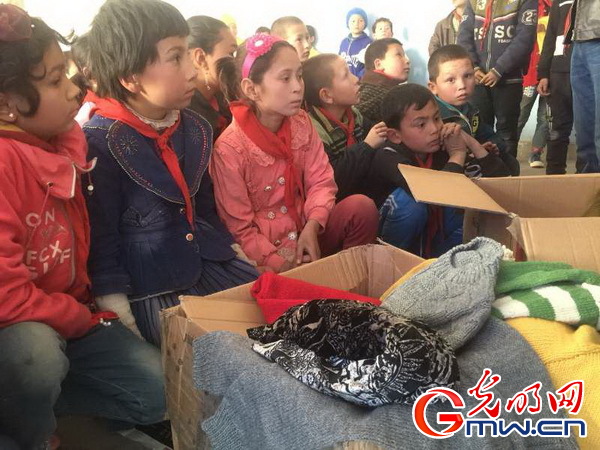 和田地区皮山县乔达乡小学生在等待领取爱心人士捐赠的衣物。光明日报记者 王瑟摄