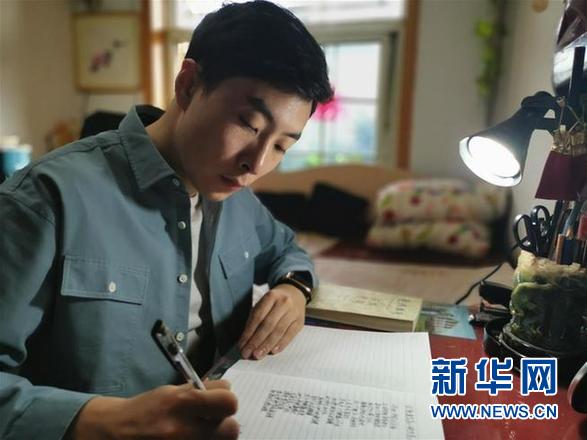 王名乐在家中查找资料,创作莲花落作品(4月27日摄)。新华社记者 马晓媛 摄