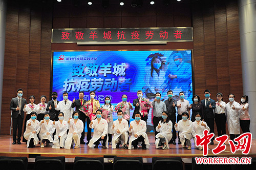 此外,广州工人艺术团与广州工人合唱团在直播现场为观众带来抗疫主题公益歌曲演唱和舞蹈表演。此次活动展示了一线抗疫劳动者的感人故事,彰显了广州职工的风采,传递了满满正能量,向默默奉献的劳动者送上节日问候和衷心感谢。