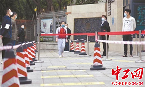 学生正在进入校门。 工人日报——中工网记者 李娜 摄