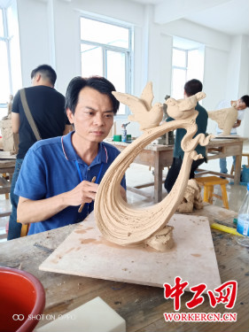 1977年出生于泉州安溪的傅华中,现任鲤城近日红瓷器店艺术总监,国家一级技师,曾获评福建省工艺美术名人、省雕刻艺术家、泉州市工艺美术大师、市技能大师、市高层次人才。今年“五一”前夕,他被命名为“泉州工匠”。