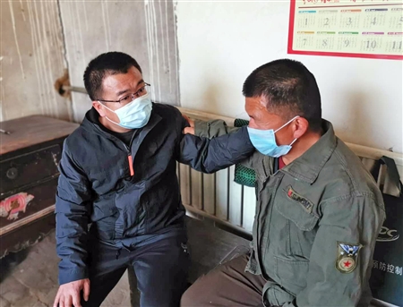 在疫情防控工作中,冉旭一直惦念着村里的贫困户,走访贫困户、帮助贫困户解决困难和问题已成了他的习惯。在走访中,他发现患有精神病的贫困户白某在街上闲逛,而且没戴口罩。他找到白某的姐姐后掏出200元钱,让白某的姐姐给白某购买防护用品,并叮嘱白某的姐姐照看好白某,防止疫情传播。白某的姐姐感激不尽。