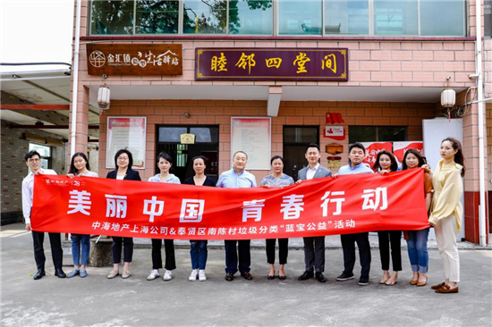 2020年是环境治理的关键一年。5月21日,雷锋班第十七任副班长李峰威和中海企业发展集团上海公司10余名“学雷锋志愿服务队”青年志愿者,来到上海市奉贤区金汇镇南陈村,开展以“美丽中国·青春行动”为主题的“蓝宝公益”活动,和当地村委走家串户进行垃圾分类宣传及垃圾分类用品发放,助力当地“生态村组·和美宅基”的创建。