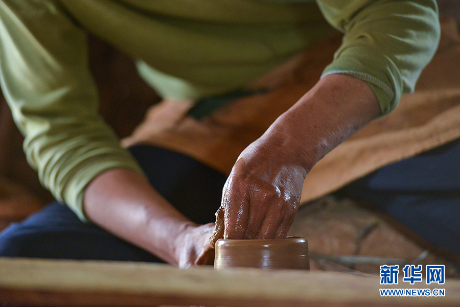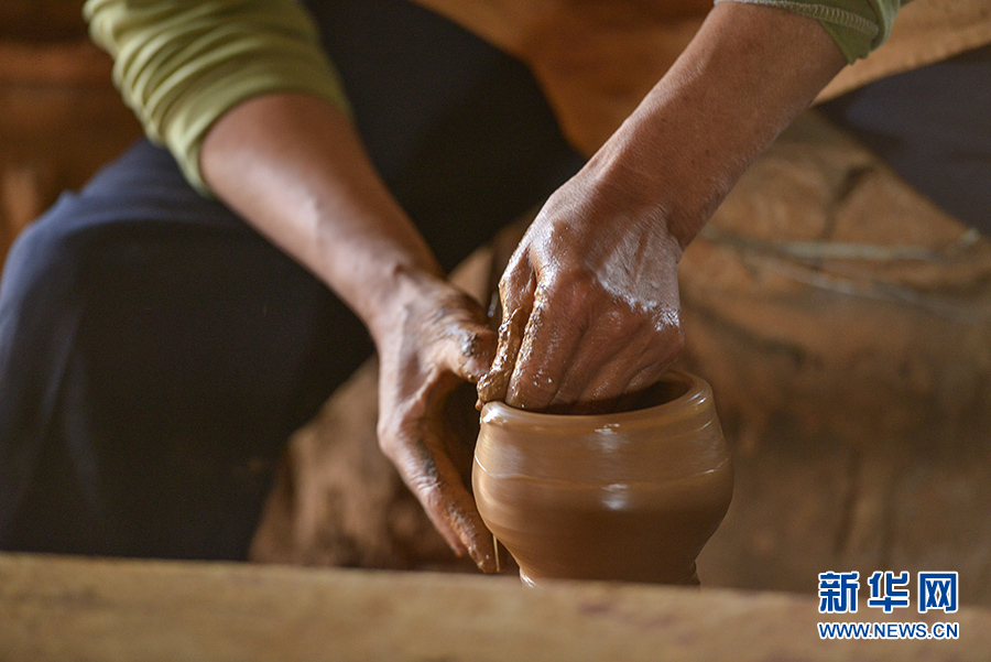 胡光荣制作土陶壶。新华网发 郑毅摄