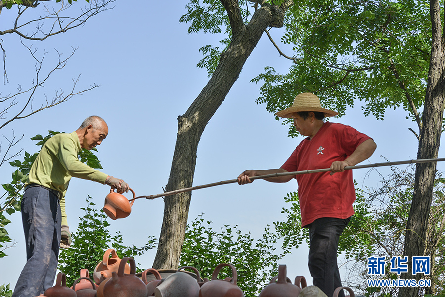 开窑时,一件件土陶壶、土陶蒸笼成品被长钩从窑炉中钩出。
