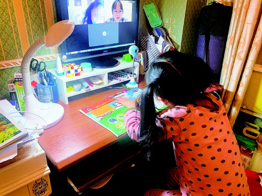武汉解封后,女儿可以出门玩耍了,但到了小老师的网课时间,女儿就会主动回家上课。