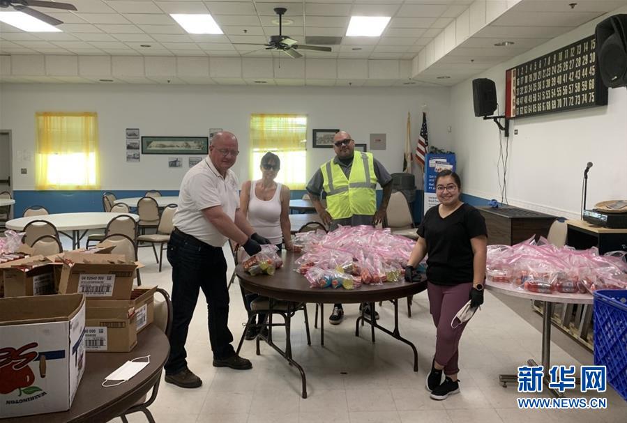 美国加利福尼亚州弗雷斯诺县农村交通局的工作人员为当地居民分装援助物资(2020年6月中旬摄)。新华社发(弗雷斯诺县农村交通局供图)