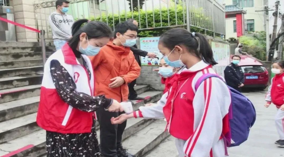 4月19日,龙胜小学四至六年级开学后,无论是协助门卫测量体温,还是学校复学后疫情活动的宣传报道,都有李莎忙碌的身影。