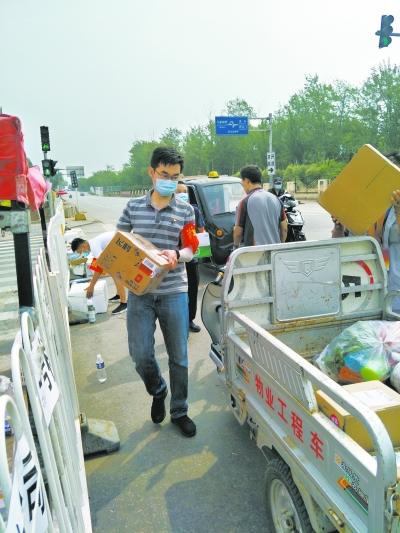赵清为隔离小区的居民搬运物资。实习记者 师悦整理