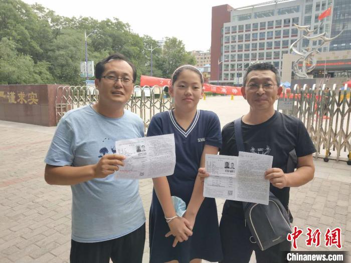 图为刘东(左)和女儿以及刘文忠考试后合影。 张林虎 摄