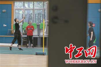 7月2日下午,马宇涵在父母的陪伴下来到体育馆里打羽毛球。居家期间,马宇涵每天下午会进行30分钟的体育活动。