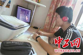 7月3日,居家学习的刘嘉正一个人在卧室复习网课。为了适应高考的节奏,他把各科的复习时间按照高考时的安排制定。