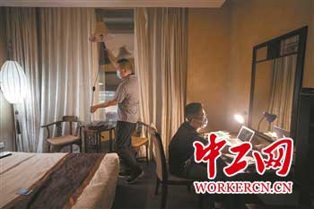 7月6日,高考前一天晚上,在与十八中一墙之隔的一家酒店内,考生赵家毅的父亲拎着大包小包走进房间。与以往在酒店住宿不同,这次行李箱里带的最多的是赵家毅各科的复习资料。一进房间,赵家毅的父亲便忙活了起来。查看窗户隔音、调节空调温度,因为房间内灯光偏暗,他又特意跑到楼下,从车里取出早已备好的护眼台灯。“我想给他尽可能地营造一个良好的学习氛围。” 赵家毅的父亲说,因为家离考点比较远,又赶上雨季,为减少路上来回的奔波,他早早就预定了这家酒店。