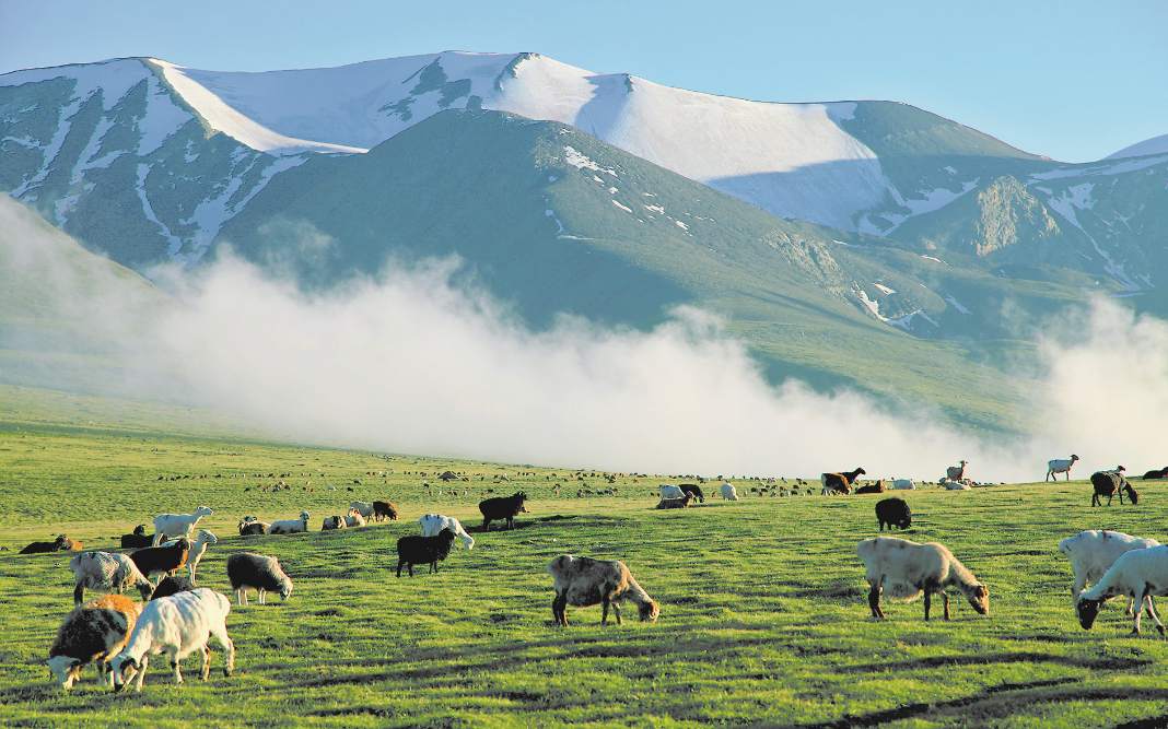 沿着温泉河谷一路向西,可以看到两侧蜿蜒的山脉,南侧是别珍套山,北侧是阿拉套山。博尔塔拉河从中间缓缓流过,像一位温情的母亲,用她甘甜的乳汁,哺育着这里的人们。