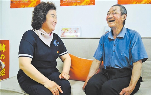 巴哈义古丽·尼合买提(左)和刘国群老人(右一)正在畅谈。