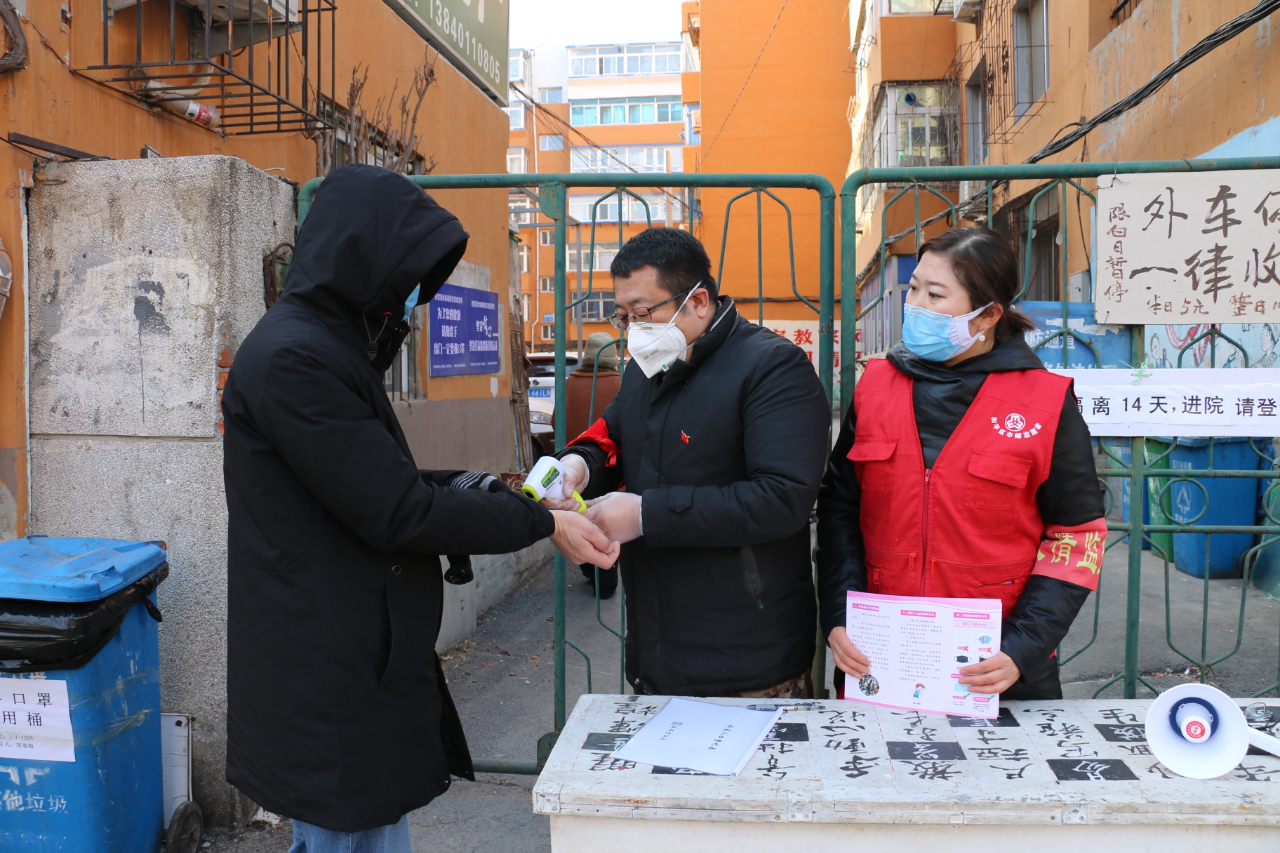 疫情期间,沈阳市和平区志愿者在社区卡点值守。