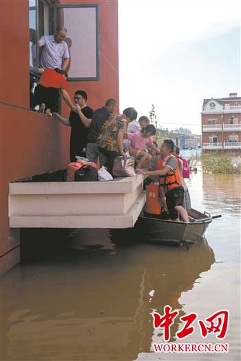 这是一个必须听从指挥的登船过程。小船与阳台之间有着一定高度的落差。稍有不慎,不仅被救者有可能跌入水中,小船也容易倾覆。
