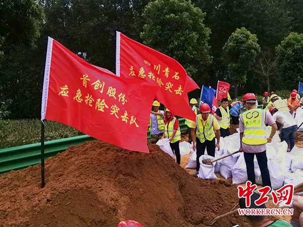 7月10日16时,江西九江彭泽县,首创集团所属首创股份派驻彭泽项目全体干部职工在芙蓉农场杨家嘴大堤紧急集合,前往工地进行防汛作业。