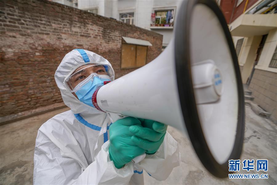 “请大家自觉按照防疫要求,不要聚集。如果遇到身体不适,请主动告诉社区……”手里拿着扩音器的艾科拜尔·艾买提来回走在乌鲁木齐市二道弯路25号院内,不停向小区居民宣传防疫要求。