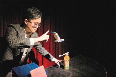 《梦回铁达尼》,是董亮获得“西湖国际魔术节”金奖的作品。表演中,他的道具只有一副遮住眼睛的面具和一副扑克牌,用扑克牌来讲述那100多年前的经典爱情故事。遮住眼睛,董亮手中的扑克牌花色仍能够契合口中所述的故事情节。这样的技巧,在一些观众看来或许并不稀奇,但董亮认为,魔术也可以作为讲述故事的载体,让观众产生共鸣,技巧本身很重要,而技巧所承载的故事内容同样也会为魔术增色不少。