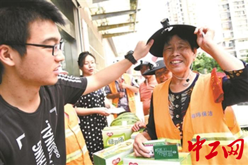 当日,这个社区联合江苏大学志愿者开展“为环卫工送清凉”活动,向10多名环卫工人赠送绿豆汤、风扇帽、西瓜、藿香正气水等,为“城市美容师”送上关怀。
