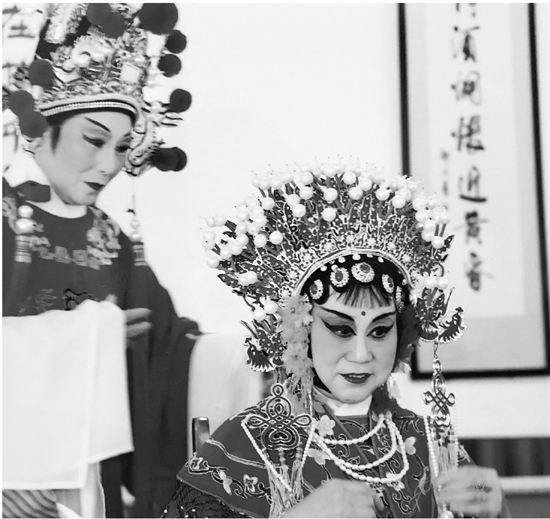 或许是在社区的文艺汇演上,她演婺剧。她扮演《打金枝》里娇滴滴的升平公主,《断桥》里体态婀娜的白娘子,惟妙惟肖。