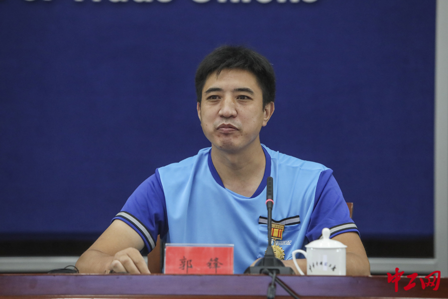 武汉市五一劳动奖章获得者、外卖骑手郭锋答记者问 。中工网记者 王鑫 摄