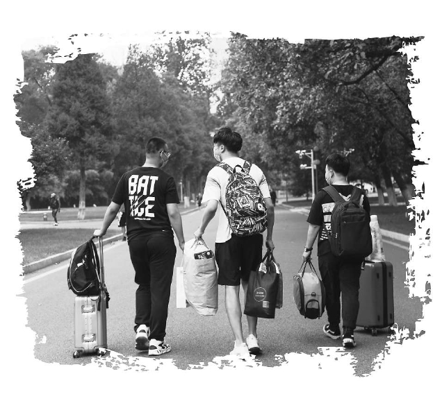 消毒、测温、核对身份信息、出示核酸证明、扫健康宝二维码……在完成一道道严格的入校手续后,孙毅展拎着大包小包走进久违的校门。