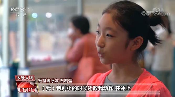 姬凯峰冰友 石若莹:我叫他姬爷爷,认识大约6年了,特别小的时候还教我动作,在冰上,那时候我还不会滑呢。